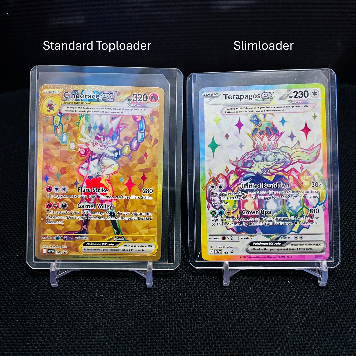 Our compact Slimloaders hold a 2.5" x 3.5" will hold Pokemon and equivalent thickness trading cards. The top loaders are made from crystal clear rigid PVC so your collection will be secure as long as you own it.